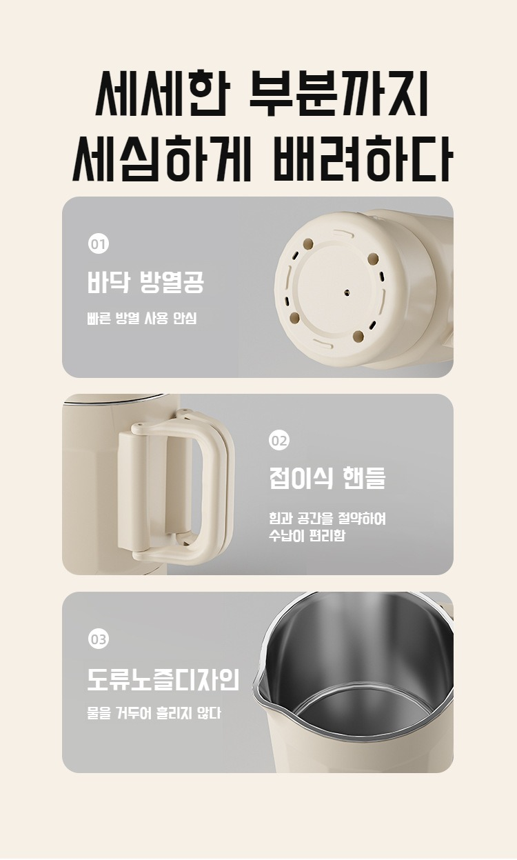 스텐 소재의 견고한 전기포트 디자인
